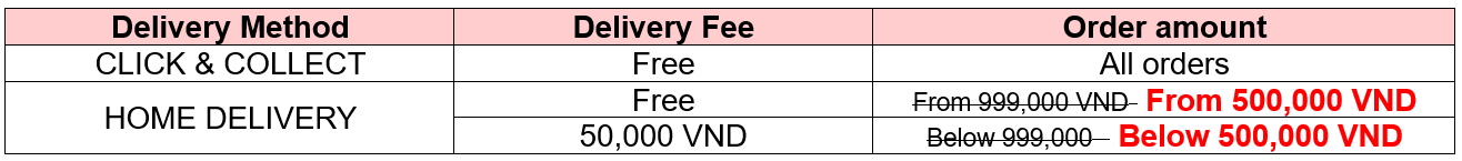 Please check the shipping fee information below to enjoy Free shipping fee for online orders: