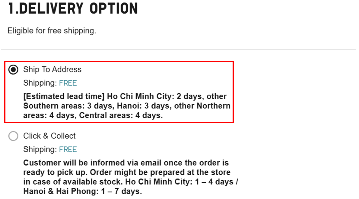 Step 5. Select delivery option. Currently we have 2 available options as below.