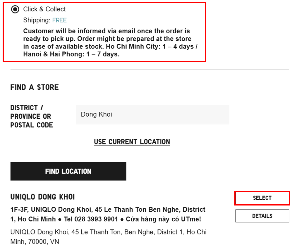 Choose the desired store that you want to come for pick up. Press [Pick up in this store] and continue for next step