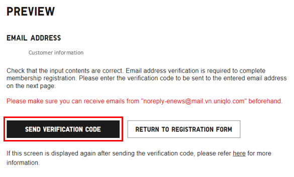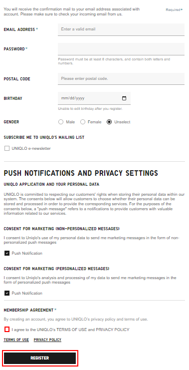 Tick on box “I agree to the UNIQLO’s TERMS OF USE and PRIVACY POLICY”