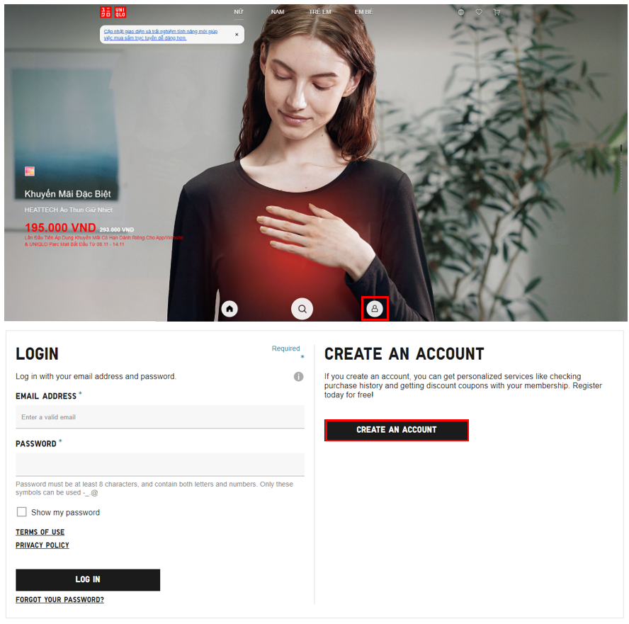 You may create and register a Uniqlo account on our website at www.uniqlo.com/vn.