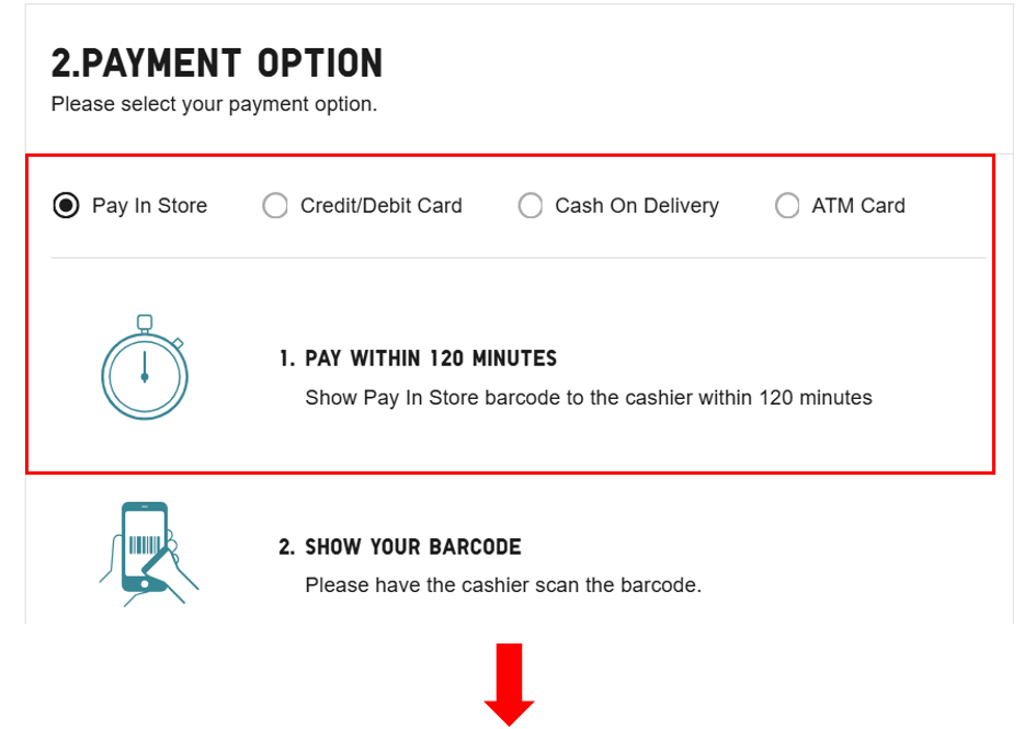 If you choose “Pay In Store”, please refer to the information on notification screen carefully as above: