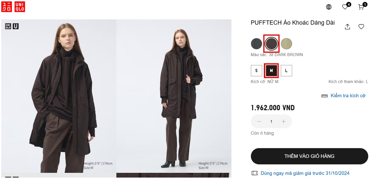 Bước 1. Tìm sản phẩm mà bạn yêu thích. Chọn màu và kích cỡ sản phẩm mong muốn.
