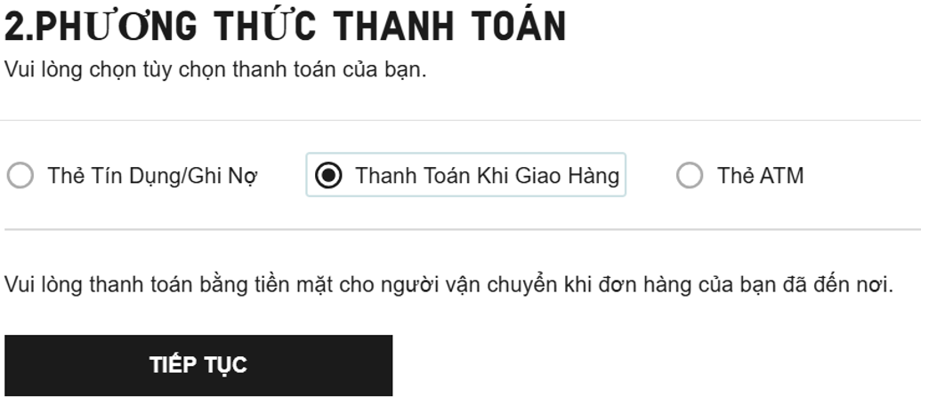 Lưu ý: COD (Thanh toán tiền mặt khi giao hàng) chỉ được áp dụng đối với hình thức Giao Đến Địa Chỉ