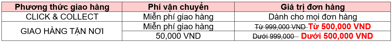 Quý khách vui lòng tham khảo thông tin Phí vận chuyển để có thể tận hưởng ưu đãi Miễn phí giao hàng:-