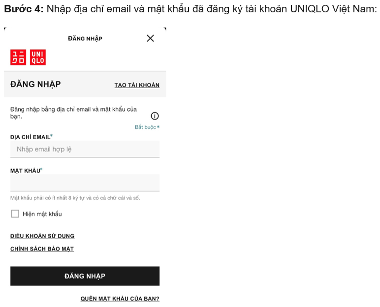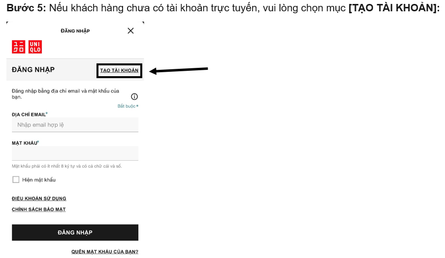 Quý khách có thể nhấn tại đây để tham khảo bài viết hướng dẫn tạo tài khoản thành viên UNIQLO