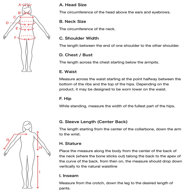 *Please note: Starting with the Fall/Winter 2025 product lineup, we will be revising the size chart for WOMEN body measurement so that you can select the most appropriate size.