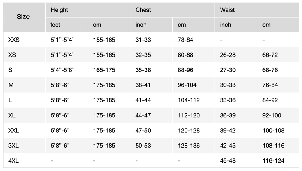 BODY MEASUREMENTS (Men)