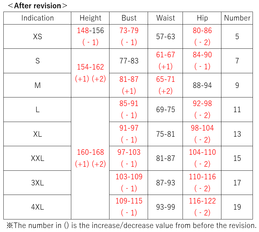 Starting with the Fall/Winter 2025 product lineup, we will be revising the size chart for WOMEN body measurement so that you can select the most appropriate size.