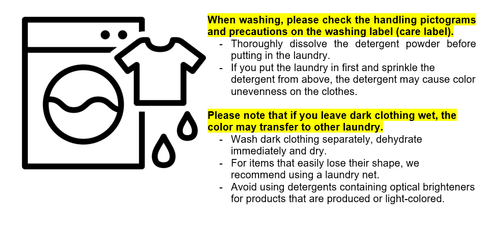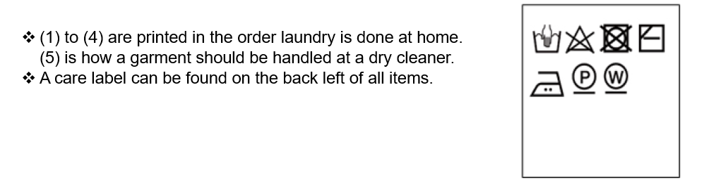 Ex.) The maximum washing temperature is 40℃ and the garment can be washed on a gentle cycle with a home washing machine.