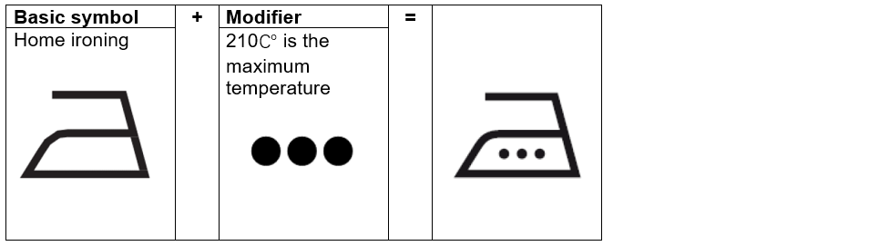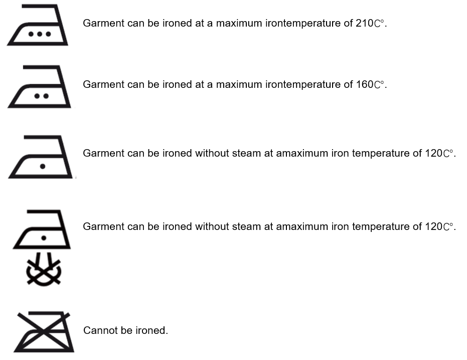 Ex.) Garment can be ironed at home at a maximum iron temperature of 210℃