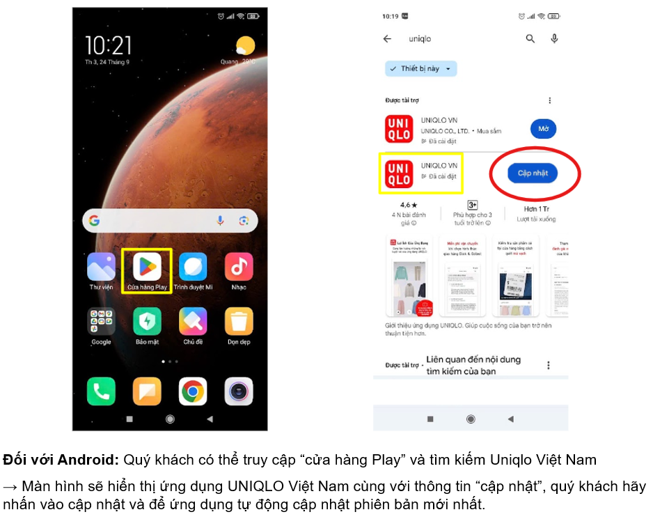 Để thay đổi ngôn ngữ trên ứng dụng UNIQLO Việt Nam, vui lòng tham khảo tại đây.