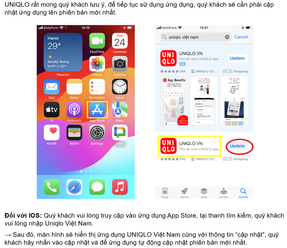 Nhằm mục đích nâng cao trải nghiệm mua sắm của quý khách, UNIQLO Việt Nam cập nhật một số chức năng và giao diện trên website và ứng dụng UNIQLO Việt Nam, quý khách vui lòng tham khảo thông tin qua các hình ảnh sau: