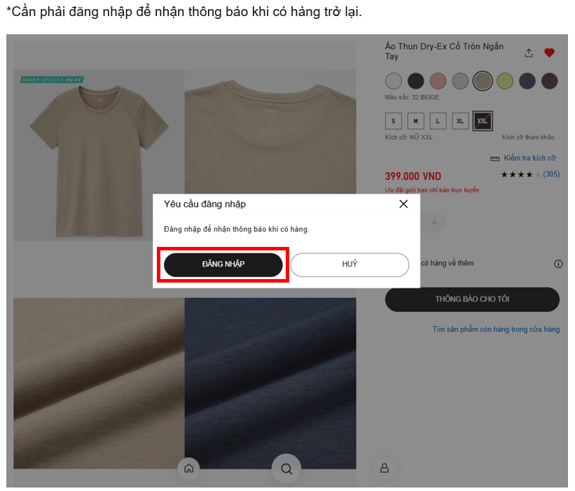 Cách nhận thông báo khi mặt hàng có hàng về thêm: