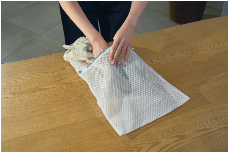 2) Dùng túi giặt để bảo vệ vải tránh bị giãn hoặc xù lông