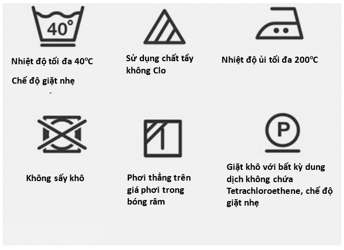 1) Giặt bằng nước lạnh và chọn chế độ giặt nhẹ. Không dùng máy sấy. Chọn chế độ xoay của máy giặt ngắn hoặc hạn chế vò sản phẩm khi giặt tay.