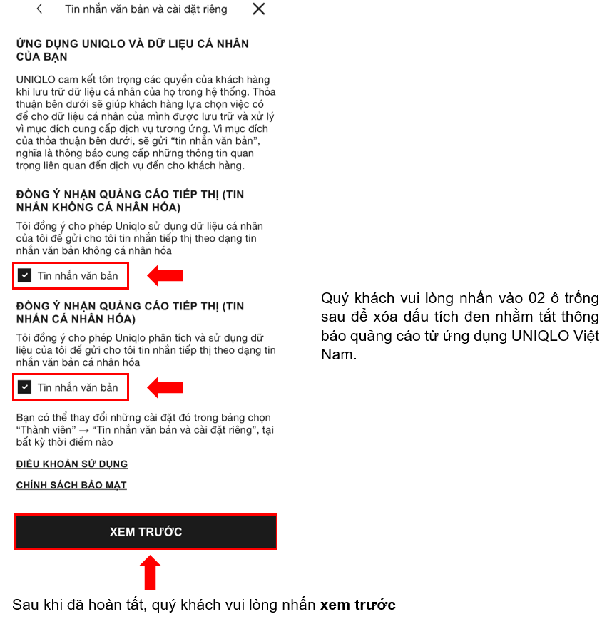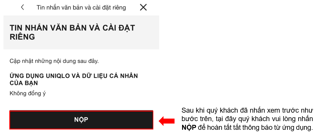 Tắt Thông Báo Trên Ứng Dụng UNIQLO Việt Nam
