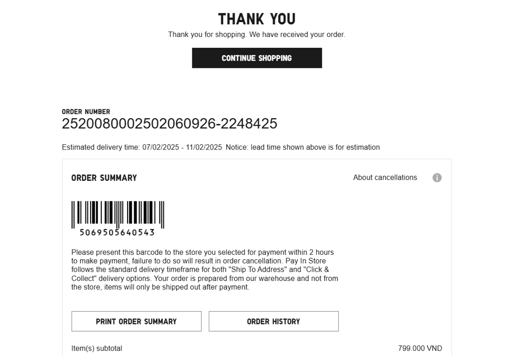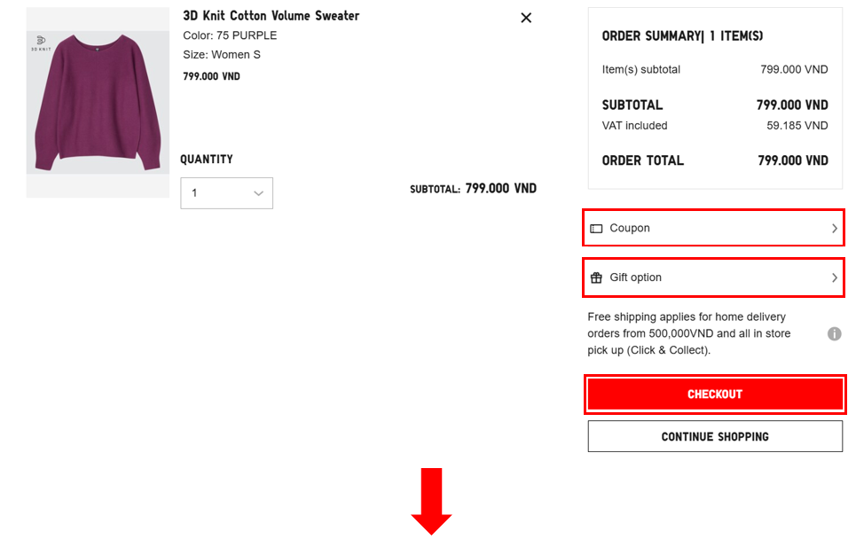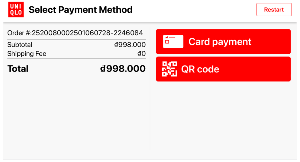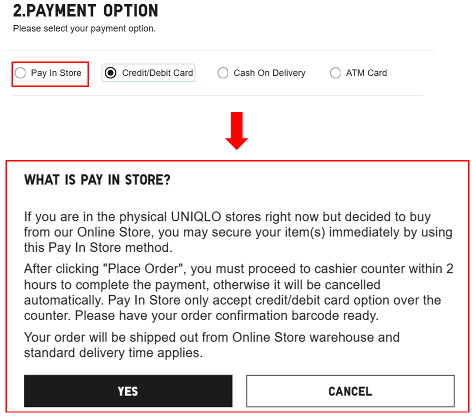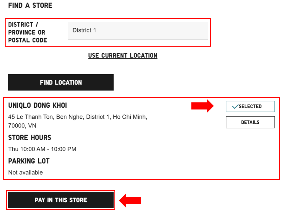 3.    If there is no UNIQLO Vietnam store in your area or the distance is too far, please choose another payment method.