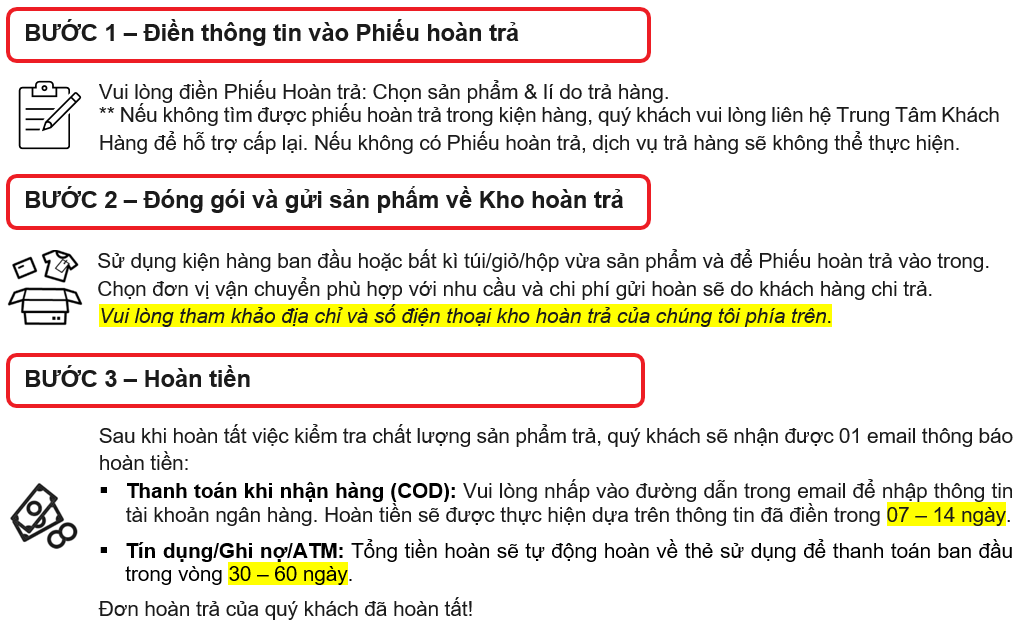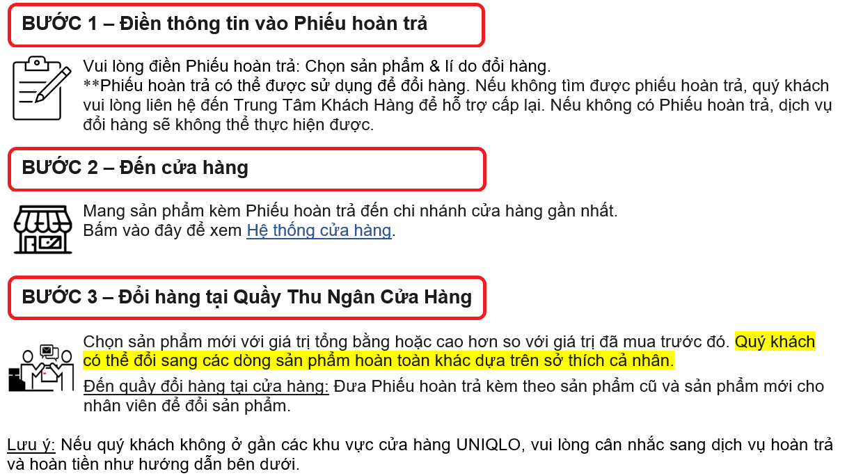 - Thông tin kho hoàn trả hàng UNIQLO Việt Nam